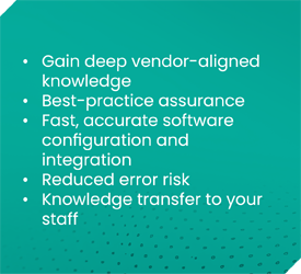 Our Professional Services provide certified experts who work alongside your personnel to spread the load, optimise workflows and resolve skill shortages. This provides faster delivery and more closely aligns operational decisions and actions with desired business outcomes.